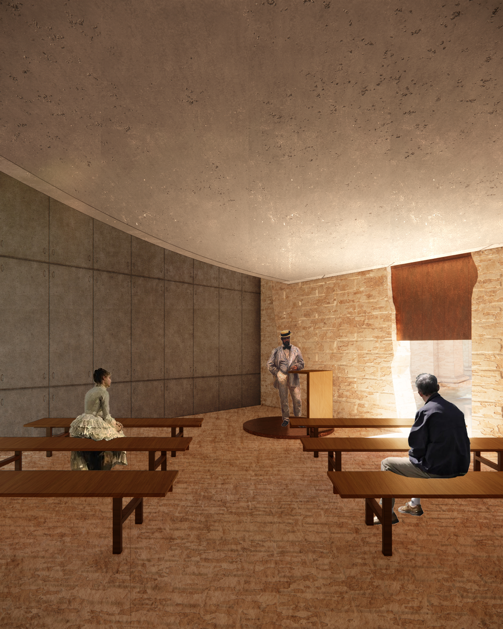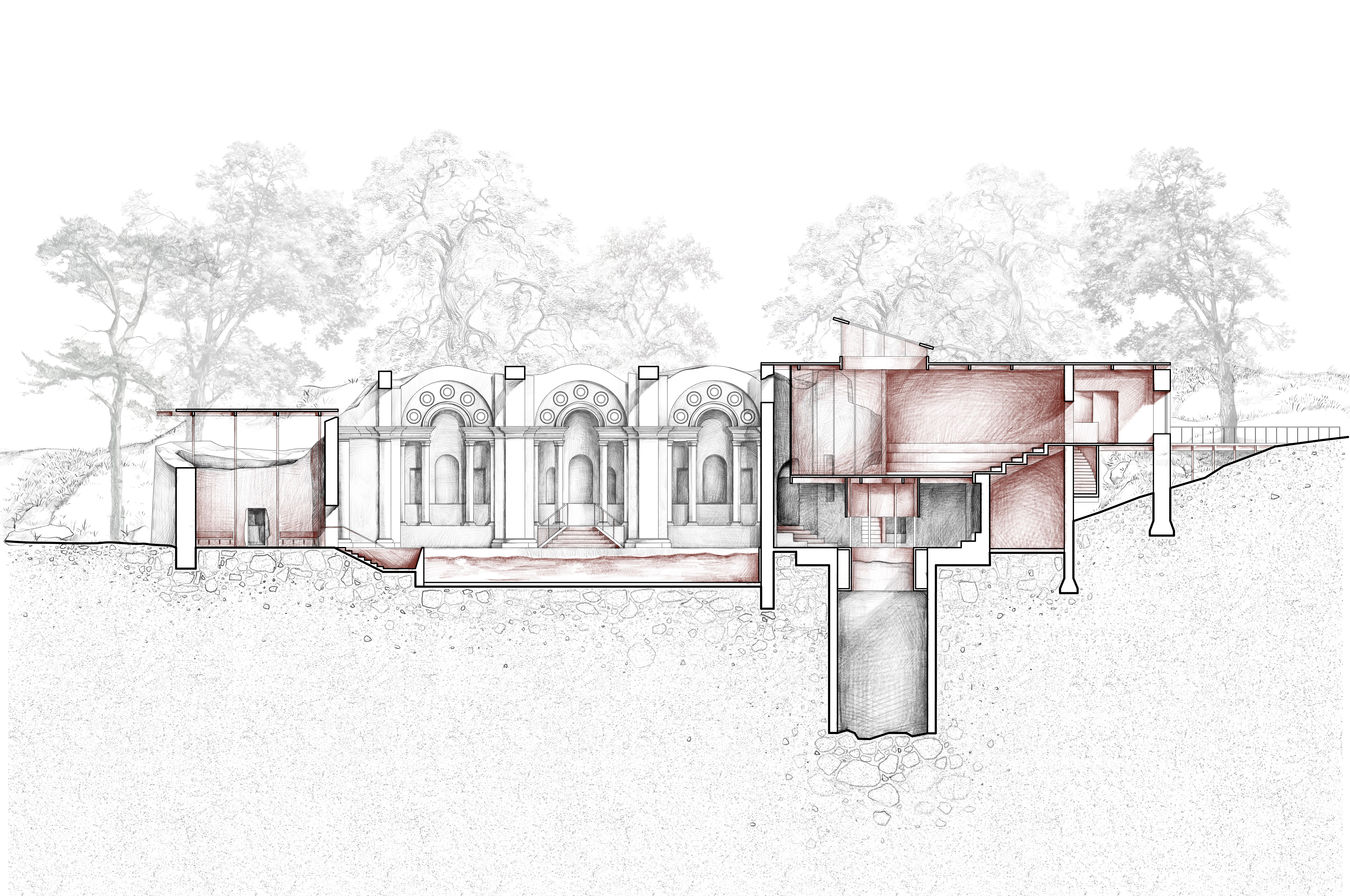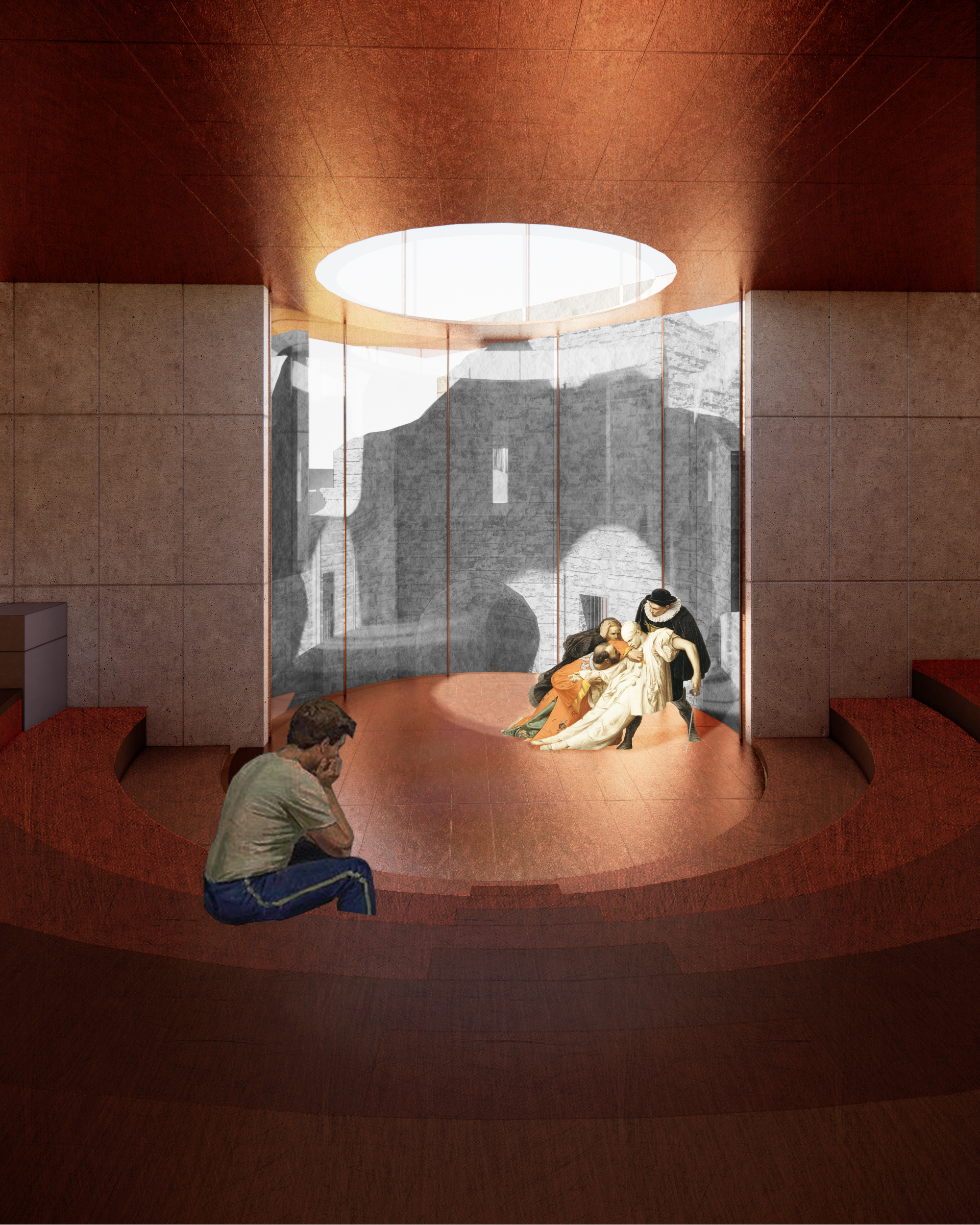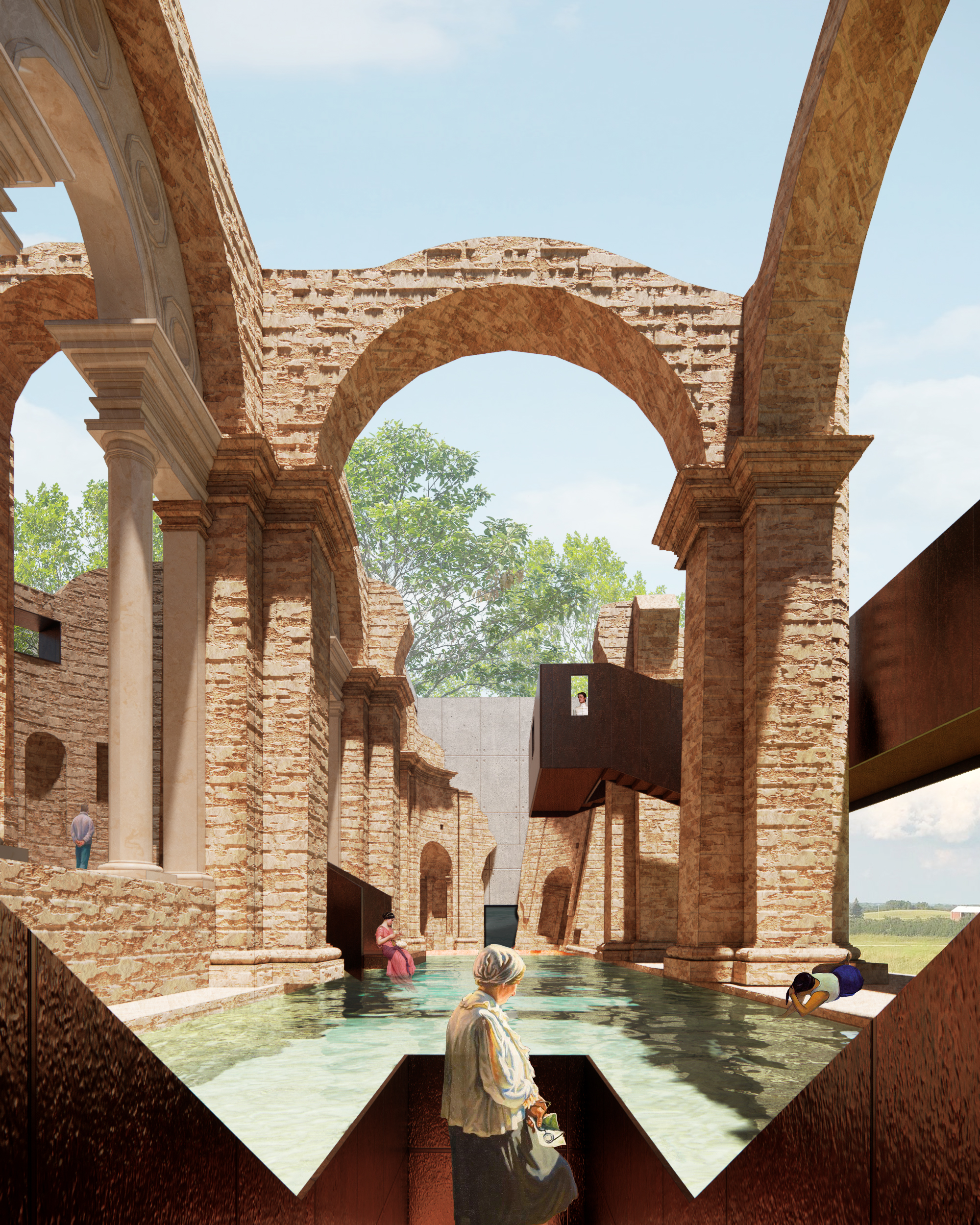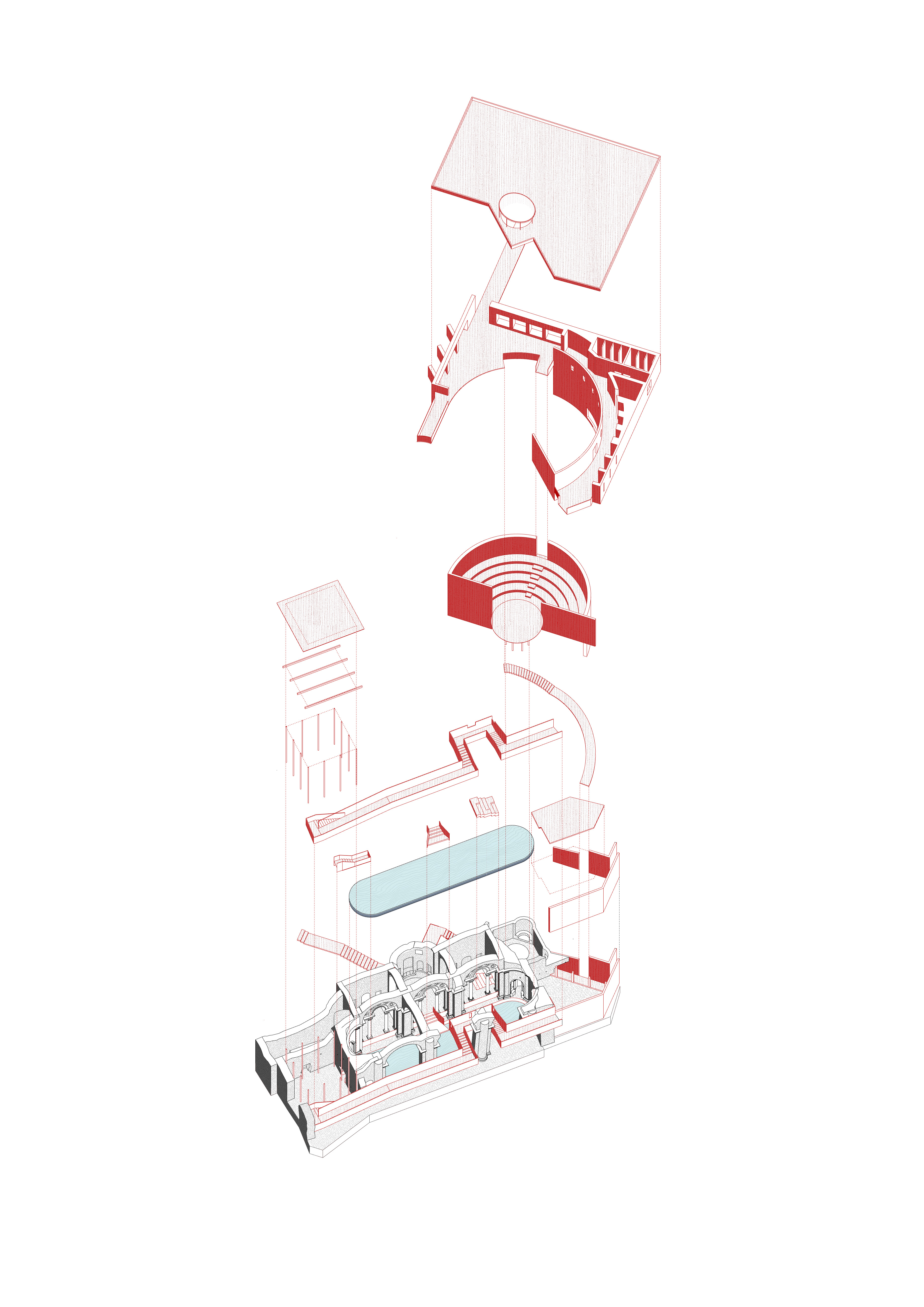 How to bring new life to a ruin? This adaptive reuse project transforms a historical landmark in Italy by introducing a new cultural function centered around a performance stage. A new theater volume is introduced and connected to the preserved areas through a series of walkways, inviting visitors to wander through a sequence of spaces that span different times and functions.